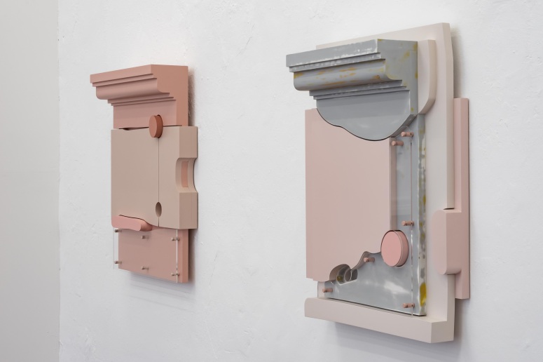 Immer wieder wecken einzelne Partien beim näheren Betrachten Erinnerungen an wohlbekannte kulturelle Erzeugnisse und Gegenstände unserer täglichen Umgebung: Haben wir hier nicht Handläufe, Griffe, Noppen, Rohre und Leitungen vor uns? Fast lässt sich eine Funktionalität erahnen, die aber doch nie final greifbar wird. Poetisch schmiegen sich die unterschiedlichsten Materialien dabei aneinander, scheinen fast wie im Tanz miteinander zu interagieren. Von Stuckleisten oder Rahmungen bekannte Profilformen vermitteln eine Dimension des Raumes, der in diesen vielschichtigen Reliefs wie zusammengefaltet und dennoch unendlich fortführbar wirkt.