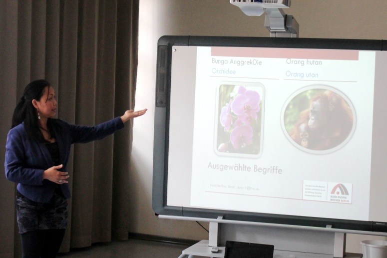 Kursleiterin Inna Herlina, Mini-Sprachkurs Indonesisch; Bildquelle: Jörg Huhmann