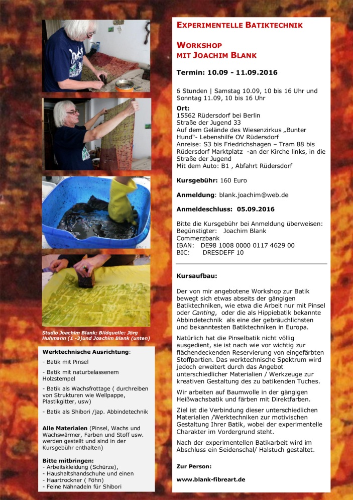 Zweitägiger Workshop am 10 & 11.09.: Experimentelle Batiktechnik