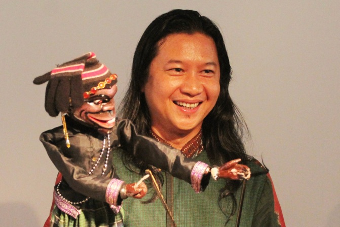 Ki Sri Waluyo mit einer seiner selbstgebastelten Puppe; Bildquelle: Jörg Huhmann