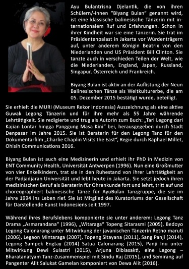 Balinesische Tänze als Weltkulturerbe mit »Biyang Bulan« Dr. Ayu Bulantrisna Jelantik, Legong-Spezialistin