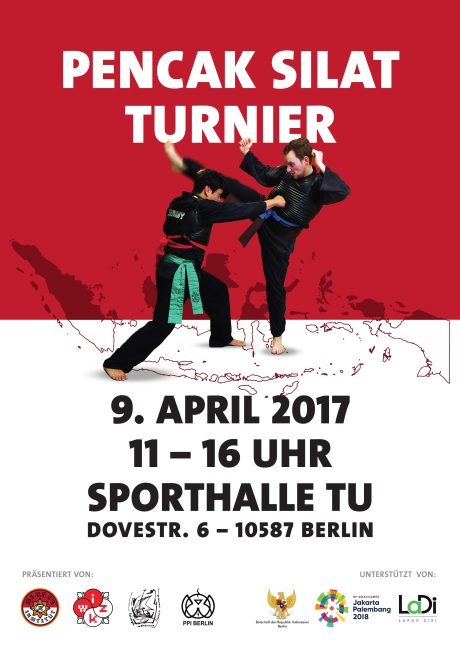 Am 09. April findet in der Turnhalle der TU Berlin, in der Dovestraße 6, ein Pencak Silat Turnier statt. Die Veranstaltung geht von 11 bis 16 Uhr. Wer interessiert ist an der indonesischen Kampfkunst ist herzlich eingeladen.