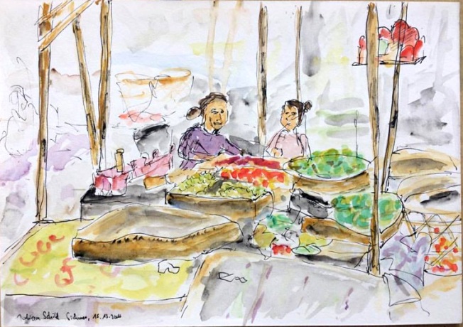 Straßenszene, Zeichnung, Juliane Schild; Quelle: Juliane Schild