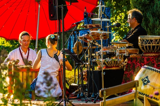 Mit: Beate Gatscha (Wasserstichorgel, Hang, Gender Wayang), Gert Anklam (Saxophone, Wasserstichorgel, Gender Wayang, Suling), Ravi Srinivasan (Tabla, Perkussion, Gesang)