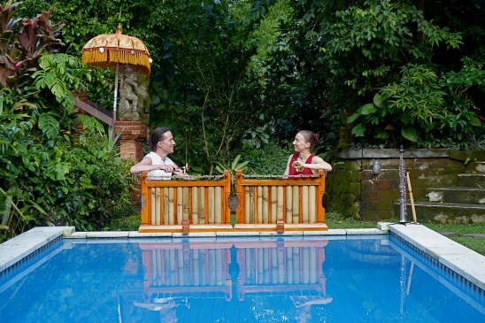 »Heute schon gebadet?« Diese Frage, auf Indonesisch »Sudah mandi ?«, gehört zu den gängigen Redewendungen auf Bali und ist das Titelstück des aktuellen Konzertprogramms der Gruppe Liquid Soul, in dem Beate Gatscha & Gert Anklam ihre Inspirationen von mehreren Studienreisen nach Bali verarbeiten. Ihr ungewöhnlichen Instrumentarium (Wasserstichorgel, Hang, Saxophon, Sheng) mit dem die beiden Künstler schon viele Jahre erfolgreich unterwegs sind, wird nun um die balinesischen Instrumente Gender Wayang und Suling erweitert.