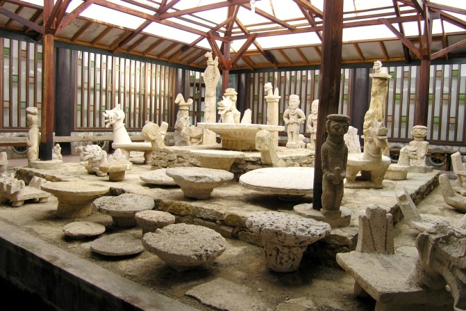 Die Megalithsammlung im Museum Pusaka Nias: Steinsitze und Ahnenfiguren aus dem 19./20. Jh.; Bildquelle: Mai Lin Tjoa-Bonatz