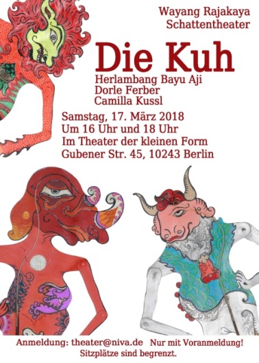Einladung zum Schattentheater »Die Kuh« mit Herlambang Bayu Aji, Dorle Ferber und Camilla Kussl, im Theater der kleinen Form.