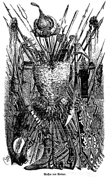 Oscar von Kessel, Die socialen Zustände von Borneo, in: Illustrirte Zeitung Bd. 19 (N.F. 7), Nr. 470, 1852, S. 11-12 (Abb. S. 11); Quelle: Museum für Völkerkunde Dresden - Staatliche Kunstsammlungen Dresden