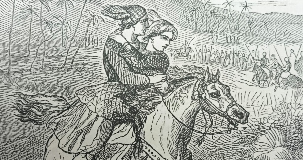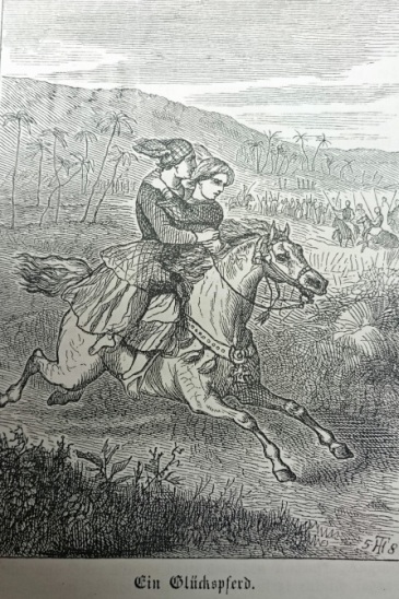 (Ausschnitt) Illustration zu einer in Sulawesi spielenden Erzählung von O. von Kessel; Oscar von Kessel, Ein Glücks-Pferd, in: Volkskalender von Karl Steffens 1859, S. 94-111 (Abb. nach S. 104); Quelle: Museum für Völkerkunde Dresden - Staatliche Kunstsammlungen Dresden