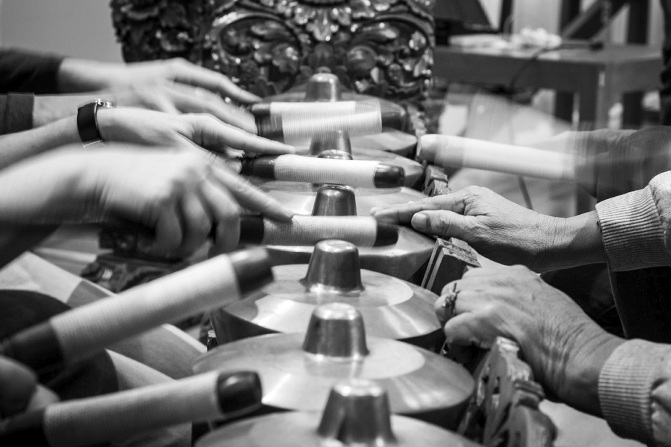 Die 20-köpfige Gruppe Gong Puspawarna aus Paris spielt traditionelle balinesische Gamelanmusik und präsentiert einen Tanz sowie die Uraufführung der Komposition »Roi du Soleil« über Ludwig den XIV von Frankreich von Krishna Sutedja.