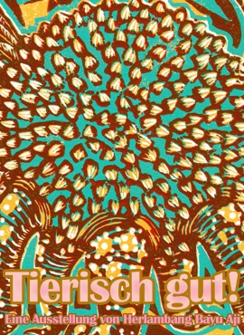 Herlambang Bayu Aji stellt Linoldrucke und Schattenfiguren aus. Bayus Schattenpuppentheater Wayang Rajakaya existiert schon lange in Berlin. Über hundert Schattenfiguren hat der Künstler für sein Theater aus Büffelleder und Pappe hergestellt. Manche Figuren sind bunt bemalt, andere lassen das Licht durchscheinen, wieder andere sind schlicht und unbemalt. Gemeinsam haben sie, dass fast alle Tierfiguren darstellen. Mit ihnen ist Bayu seit 2006 nicht nur für Ausstellungen sondern auch für Aufführungen und Workshops unterwegs. Seit 2016 arbeitet der Künstler außerdem an der Linolschnitt-Serie An_ima(l)gination. Der Titel nimmt Bezug auf die chimärischen Tierwesen, die auf den Linoldrucken zu sehen sind. Der Neologismus spielt mit den englischen Begriffen für ‚Tier‘ und ‚Vorstellung‘. Der Künstler kombiniert verschiedene Tiere miteinander, fügt sie zu neuen Wesen zusammen und bringt sie im Reduktionsverfahren bunt auf Papier. Die Ausstellung »Tierisch gut!« versammelt eine Auswahl der Schattenfiguren mit den neusten Linoldrucken, die im Kakadu das erste Mal ausgestellt werden, tierisch und gut.