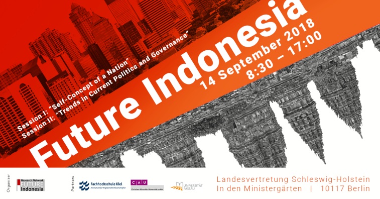 Am 14. September 2018 findet in Berlin das Symposium »Future Indonesia« statt. Es gibt verschiedene Vorträge zu den Themen »Self Concept of a Nation« und »Current Politics and Governance« mit jeweiligen Diskussionen. Das Symposium ist gleichzeitig die Auftaktveranstaltung für das »Research Network Future Indonesia«.