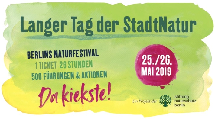 Seit 2007 rückt die Stiftung Naturschutz Berlin einmal im Jahr den Artenreichtum Berlins in den Fokus. 400 bis 500 Veranstaltungen an 130 bis 160 Orten, und dies binnen 26 Stunden. Naturkundliche Wanderungen, nicht alltägliche Führungen und Mitmachaktionen machen das Erleben von Flora und Fauna in Berlin zu einem einzigartigen Ereignis. |