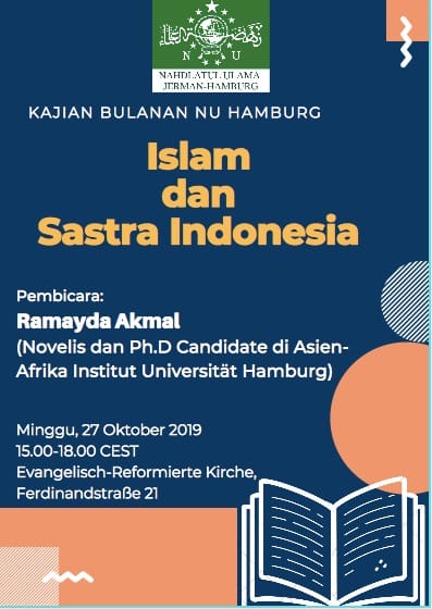 Ramayda Akmal wird auf Einladung der Niederlassung Nahdlatul Ulama in Hamburg (PCINU) zum Das Thema »Islam dan Sastra Indonesia« referieren.