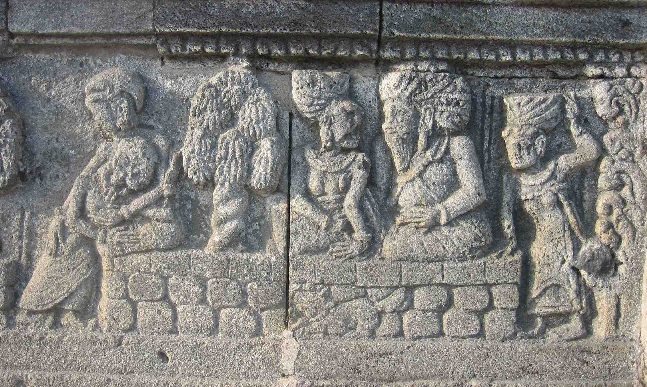 Candi Panataran, Panji und Sekartaji sind vereint und erhalten den Segen von Einsiedlern; Bildquelle: Lydia Kieven (aufgenommen 2007)
