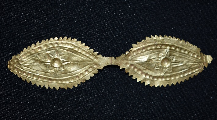 Ausgegrabene Augenmaske aus Gold, wohl aus einem Grab / Excavated eye gold cover from a grave, Makassar, Sulawesi; Bildquelle: Balai Pelestarian Cagar Budaya (BPCP) Makassar