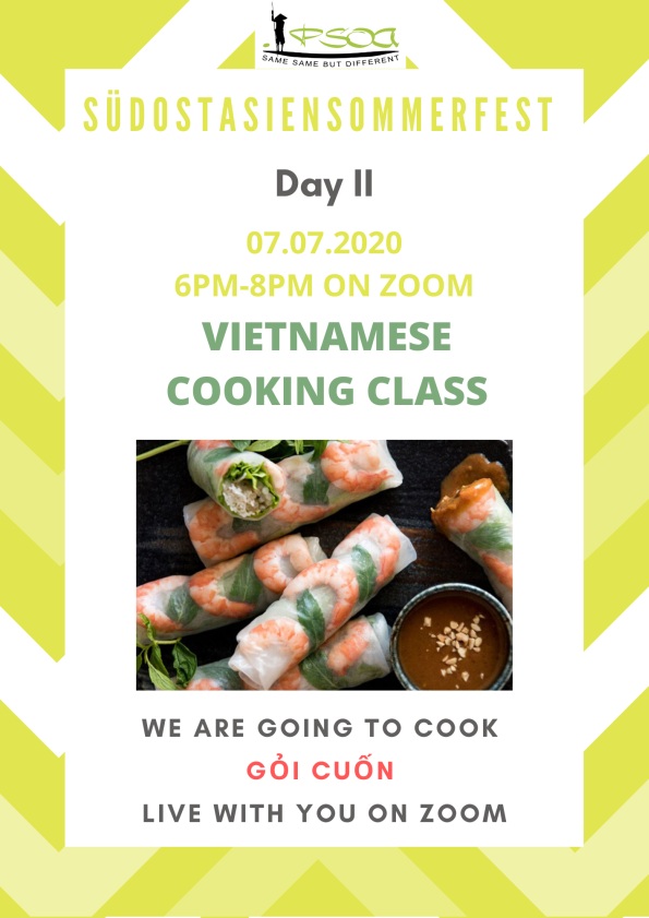 Di. | 7. Juli | 18 bis 20 Uhr | Vietnamesischer Kochkurs Mi. | 8. Juli | 18 bis 21 Uhr | Vorträge, Musik, Tanz, Quizze