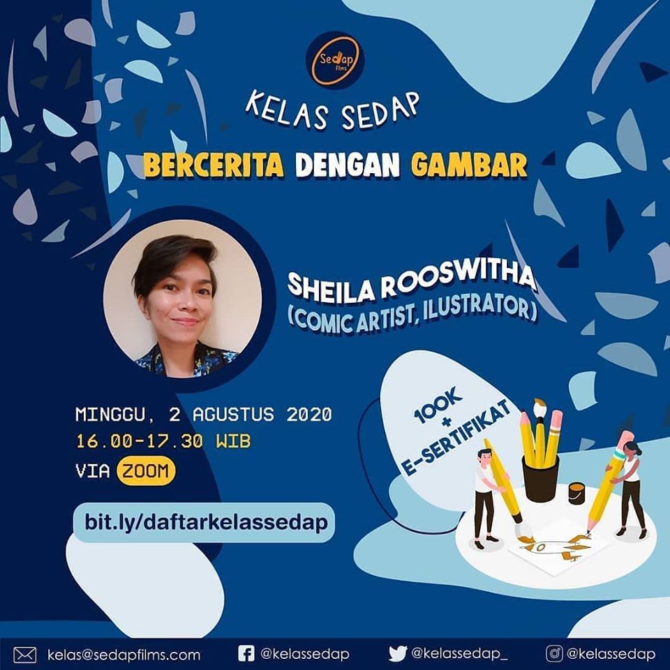 Am 02. August 2020 bietet sich die Gelegenheit an einem in Jakarta ausgetragenen Online-Zeichen-Workshop mit der Comiczeichnerin und Illustratorin Sheila Rooswitha Putri via ZOOM teilzunehmen. Einigen wird die Künstlerin sicher bekannt sein, da sie erst 2019 für verschiedende Kreativprojekte in Berlin zu Gast war.