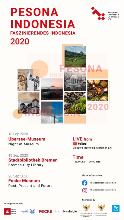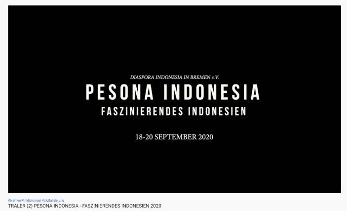 Mit »Pesona Indonesia – Faszinierendes Indonesien« präsentiert Diaspora Indonesia in Bremen e.V. in Zusammenarbeit mit dem Bremer Start-Up HelloNostalgie eine neue Initiative, in einem Onlineformat. Die Idee wird erstmalig vom 18.09. bis 20.09.2020 in Bremen vorgestellt.