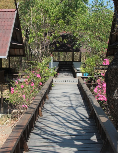 PPLH Puntondo, Südsulawesi. Das direkt am Meer gelegene Umweltbildungszentrum ist als eine Art »Stelzendorf« konzipiert. Über Brücken sind die einzelnen, oben gelegenen Räumlichkeiten der Anlage verbunden; Bildquelle: ©Jörg Huhmann / InMaOn |