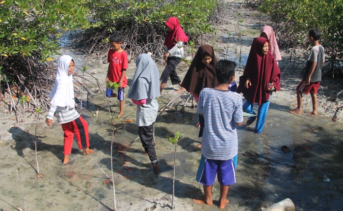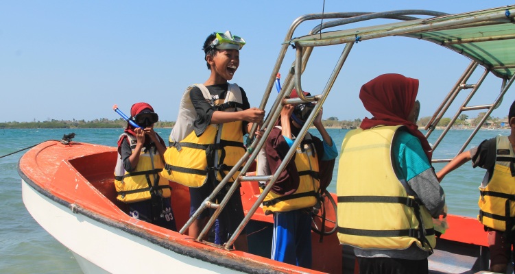 Bilder: oben; Unterricht in der Aula von PPLH Puntondo. Häufig sind Schulklassen aus der Umgebung zu Gast im Umweltbildungszentrum. Für einige Stunden gib es dann Unterricht sowohl drinnen als auch draußen. Mitte: Naturnahe Vermittlung von ökologischen Themen. Hier im Ökosystem Mangrove direkt vor der Tür des PPLH Puntondo. Unten: Auch Schnorchelausflüge auf dem Meer sind nur eine weitere Bildungsmaßnahme; in diesem Fall, damit die Schülerinnen und Schülern hautnah den Lebensraum Meer selbst entdecken können. Später wird über das Erlebte dann in der Gruppe berichtet. alle Bilder: ©Jörg Huhmann / InMaOn |