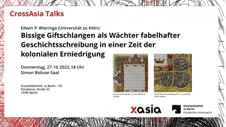 Am 27. Oktober 2022 lädt die Ostasienabteilung der Staatsbibliothek zu Berlin um 18 Uhr zu einem Vortrag mit Prof. Dr. Edwin P. Wieringa ein. Thema der Veranstaltung: »Bissige Giftschlangen als Wächter fabelhafter Geschichtsschreibung in einer Zeit der kolonialen Erniedrigung«